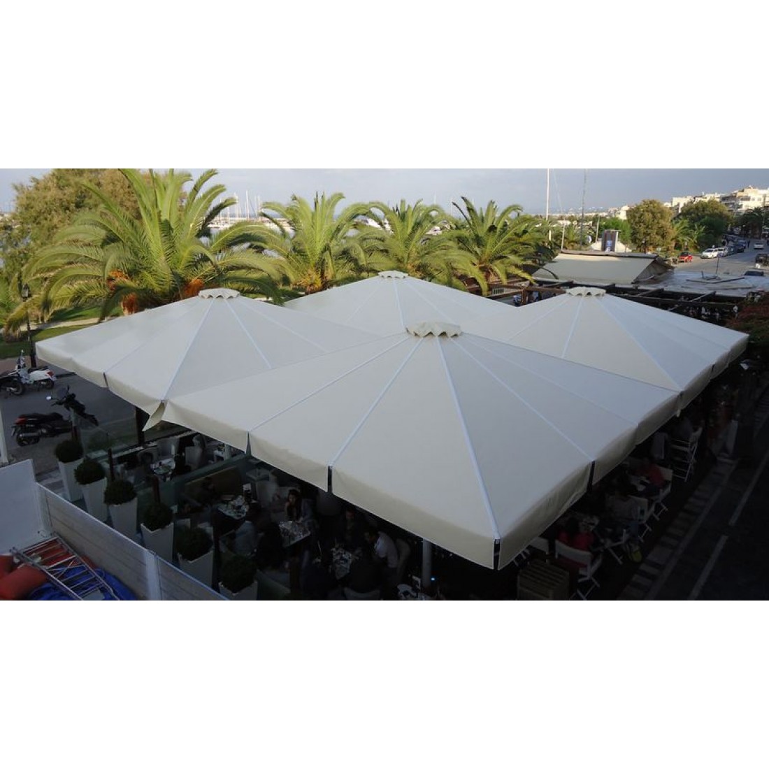 Οι επαγγελματικές ομπρέλες διατίθενται σε μεγάλη ποικιλία σχεδίων, χρωμάτων και διαστάσεων και μπορούν να καλύψουν κάθε ανάγκη σκίασης και παράλληλα να βελτιστοποιήσουν αισθητικά την εικόνα μιας επιχείρησης είτε είναι ξενοδοχείο, καφετέρια, εστιατόριο ή εκθεσιακό περίπτερο.